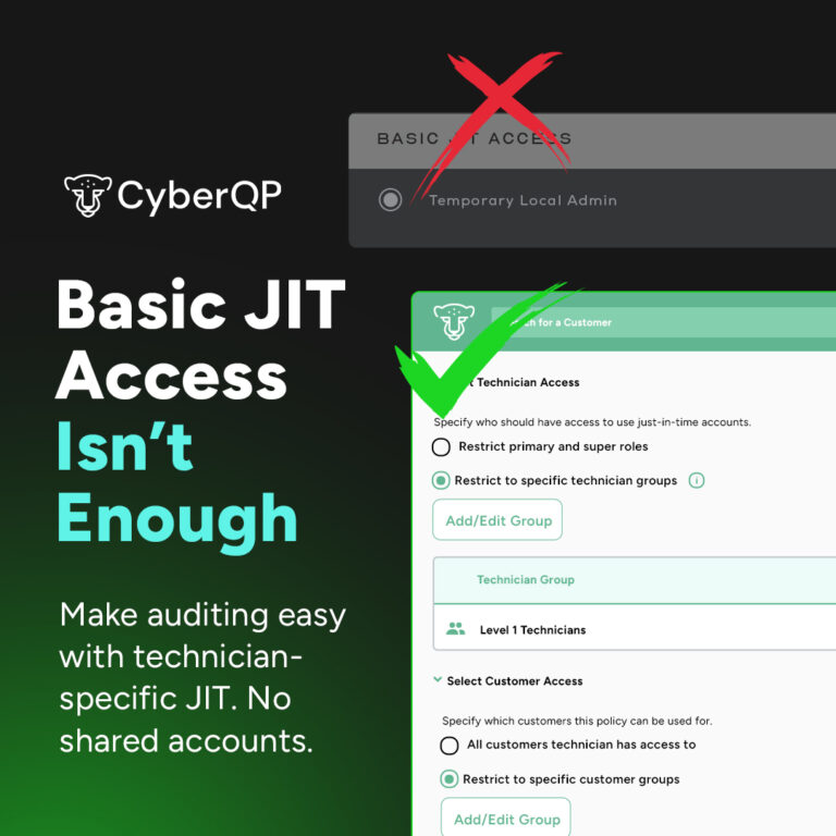 Ready to experience a more secure, efficient helpdesk? CyberQP’s Zero Trust Helpdesk Security Platform is available now. Say goodbye to standing privileges and hello to smarter, safer access management.